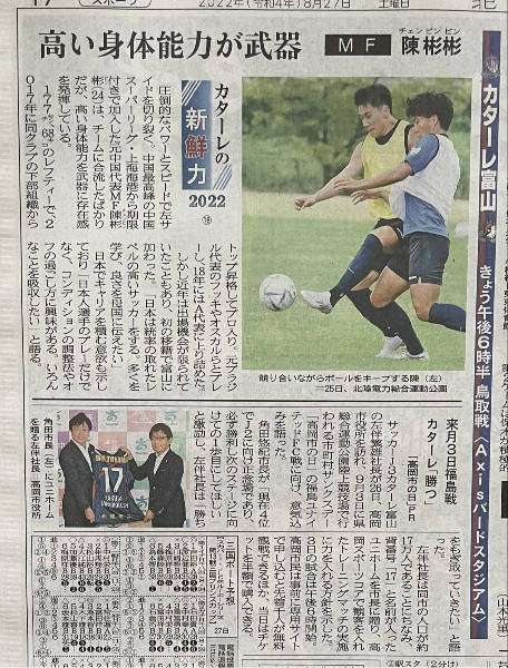 日媒:陈彬彬身体素质出众 他将帮助球队攻城略地