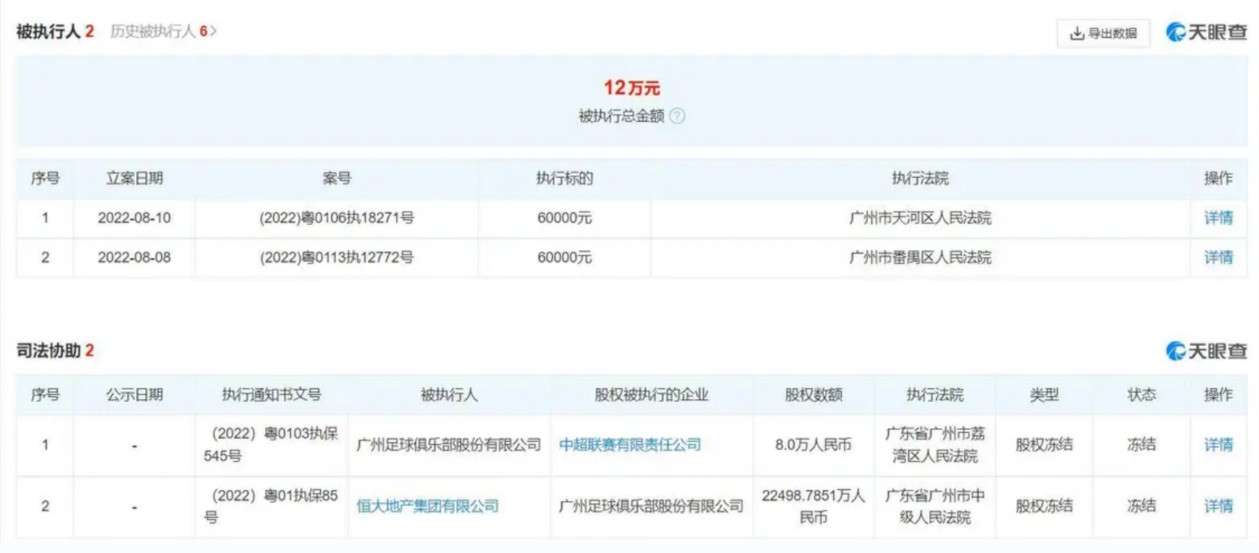 广州足球俱乐部成被执行人 俱乐部所持中超股权遭冻结