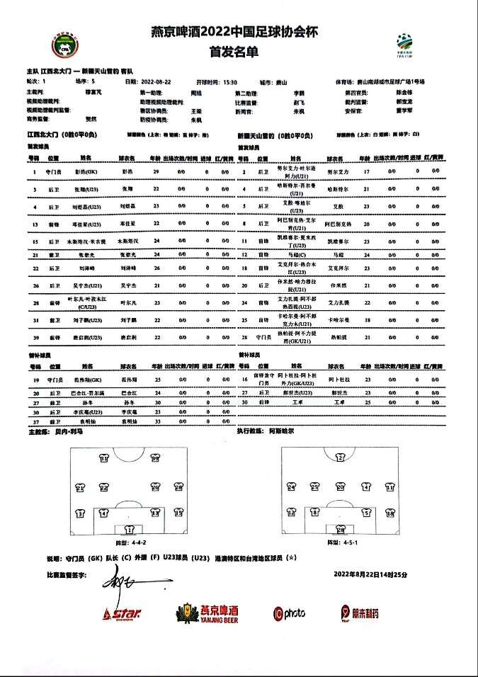 足协杯新疆队替补席仅3人 其中一人报名位置为前锋兼守门员