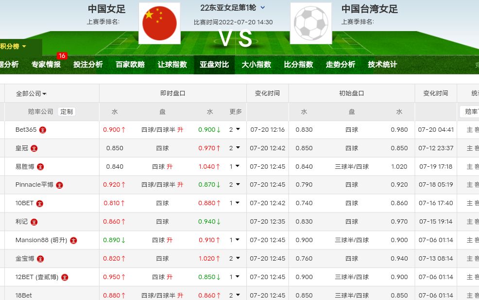 竞猜3001 中国女足 VS 中国台北女足