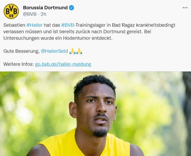 多特新援阿莱因查出睾丸肿瘤 将退出集训接受治疗