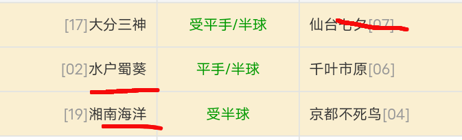 竞彩足球 周日002 日职乙第33轮 大分三神VS仙台七夕