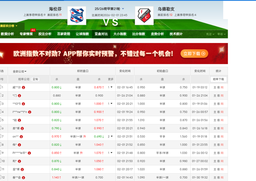 乌得勒支太菜,海伦芬没有这么强定位,以往最多平手盘,强开半球再下
