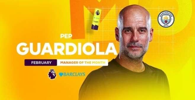 英超官方:瓜迪奥拉当选2月最佳主帅 生涯第12次获奖