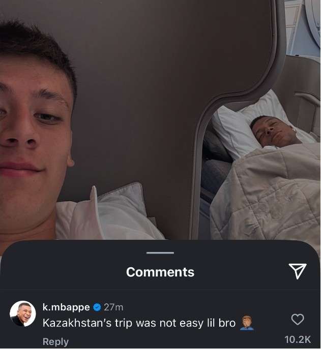 居莱尔晒姆巴佩入睡照!姆总:哈萨克之行不容易啊