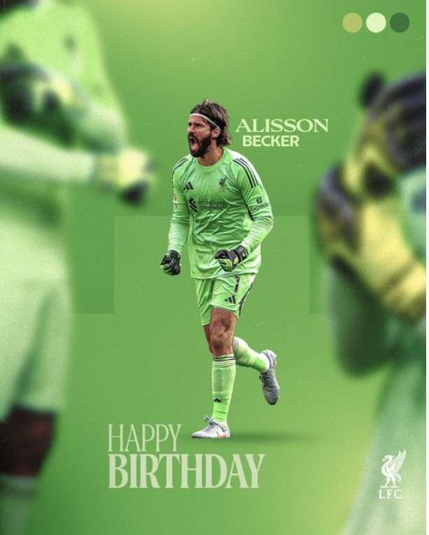 生日快乐!利物浦官方为阿利松送上33岁生日祝福