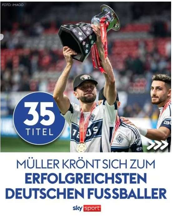 穆勒率温哥华夺冠!职业生涯已获35冠,成德国队史第一人