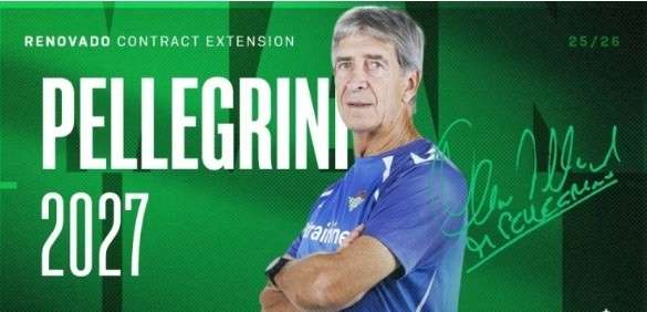 官方:72岁佩莱格里尼与贝蒂斯续约一年 新合同至2027年