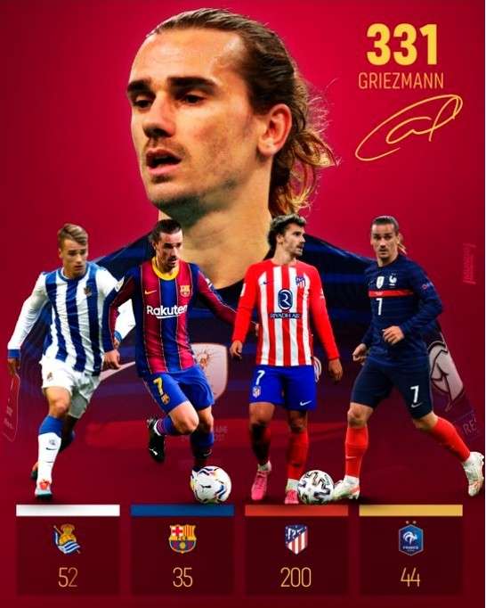 世体列马竞队史射手榜:格列兹曼200球居首,第二名仅159球
