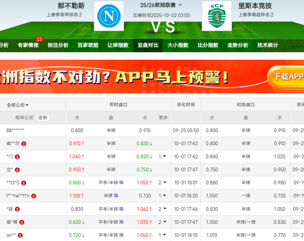 那不勒斯作为意甲冠军,打葡超冠军,半球盘门槛不高,盘口还有态度的