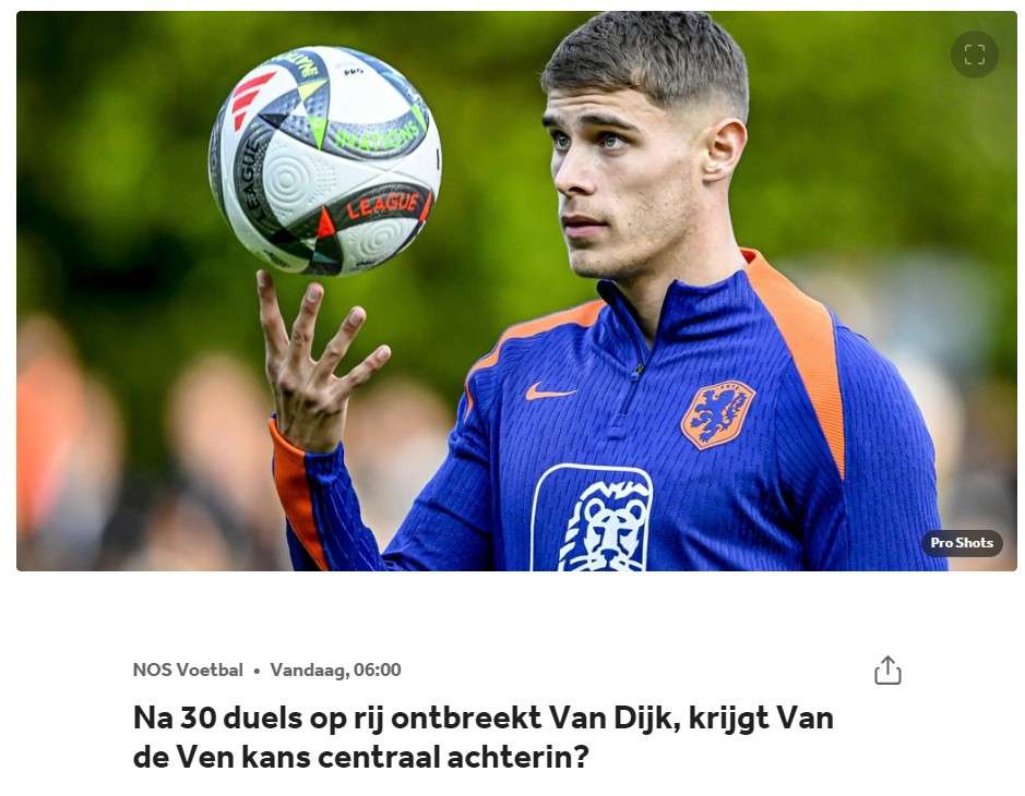 荷媒:因范戴克停赛 范德文和马特森有望获得出场机会