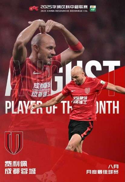 4轮5球!官方:成都蓉城外援费利佩当选中超8月最佳球员