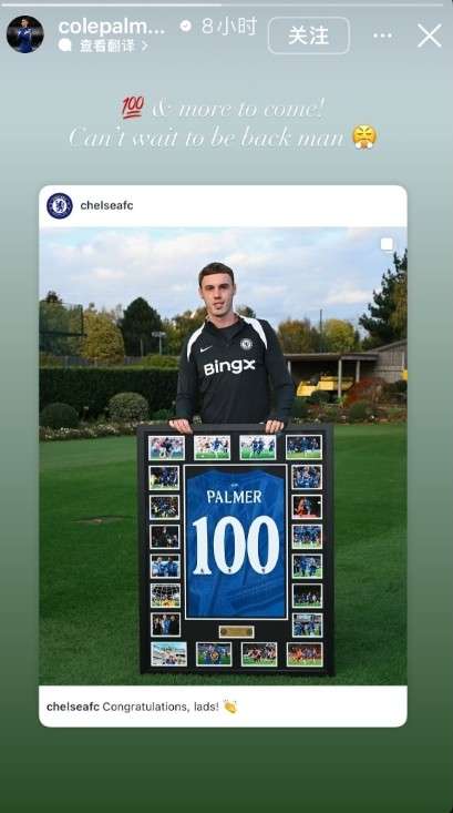 里程碑!帕尔默社媒晒切尔西百场球衣,表示想早日回归