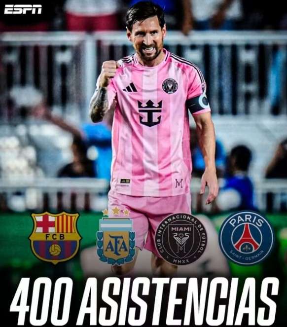 历史第一!ESPN:梅西达成400助里程碑 世界足坛历史上无人能