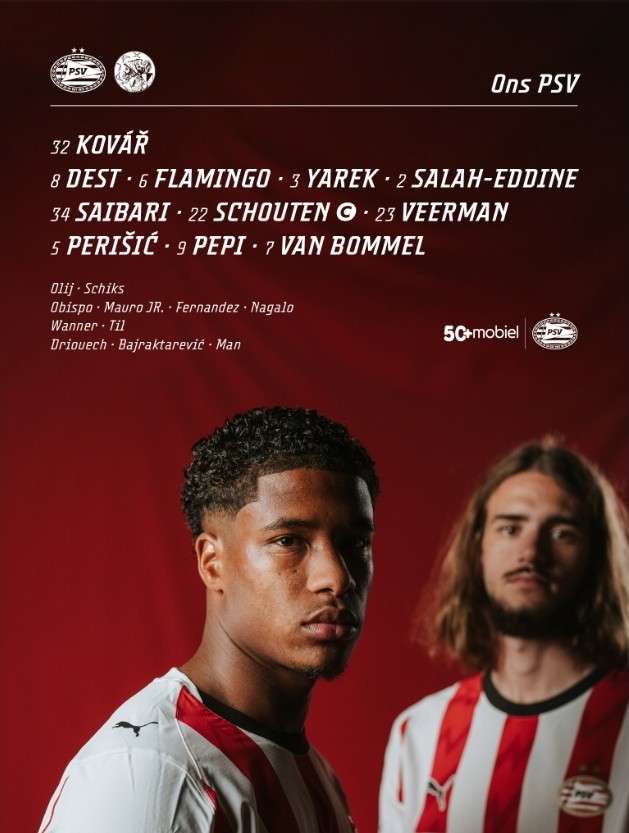 德比来袭!埃因霍温vs阿贾克斯首发:佩剑先发,板仓滉出战