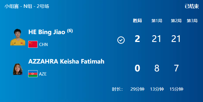 何冰娇2-0轻取法蒂玛 拿下中国代表团首胜
