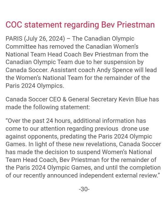 官方:加拿大女足主帅因无人机偷拍事件暂离球队