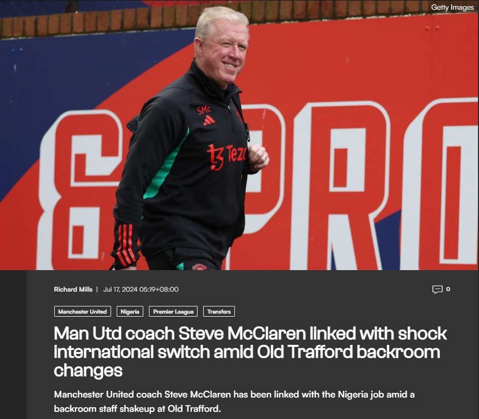 曼联教练团队或再生变:麦克拉伦将离开滕哈赫 前往尼日利亚国家队执