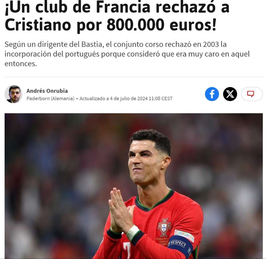 法乙巴斯蒂亚官员:2003年C罗想加盟球队 但因80万欧元被拒