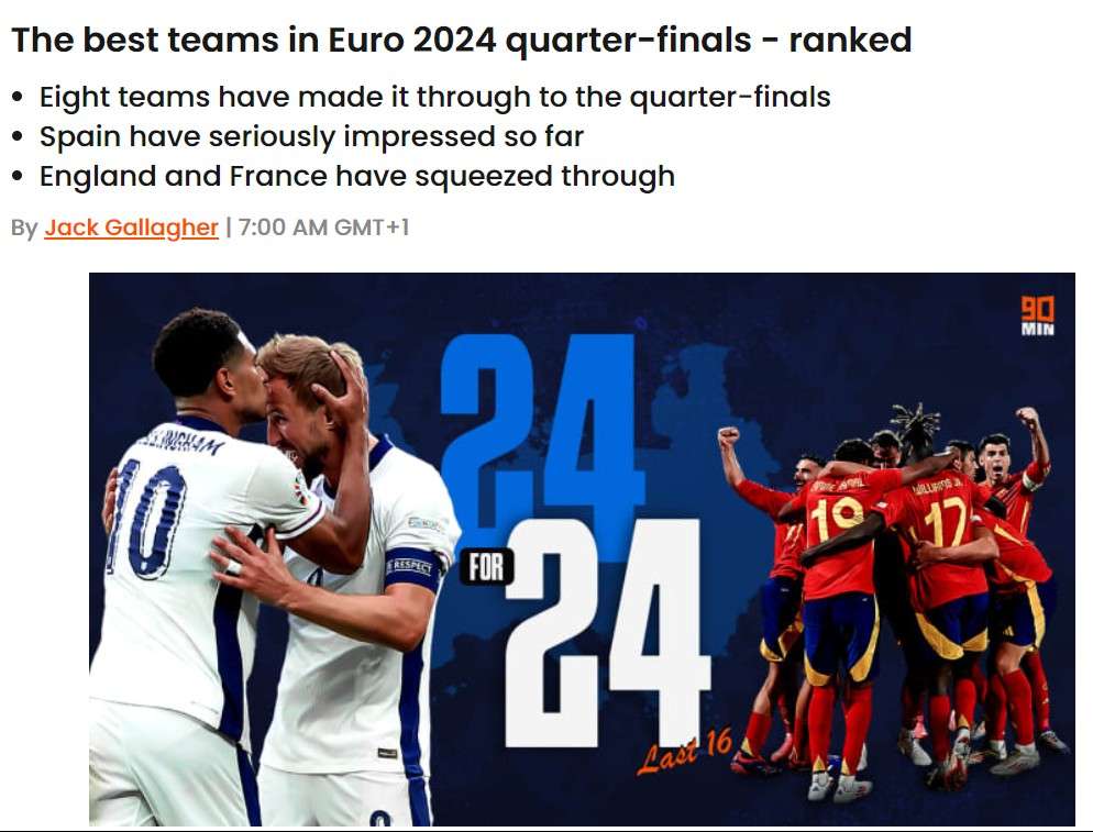 90min:欧洲杯八强英法实力最弱 葡萄牙不及德国和西班牙