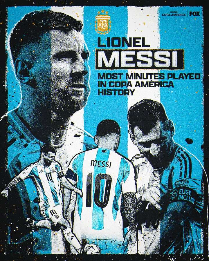 新纪录!梅西成为美洲杯历史出场时间最多的球员
