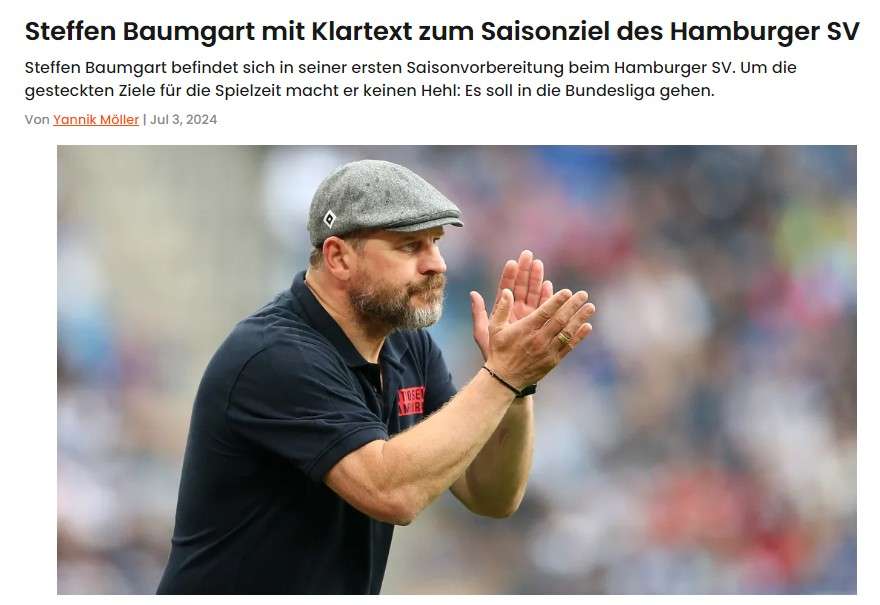 汉堡主帅:一个成功的赛季意味着升级 这是我们毋庸置疑的目标