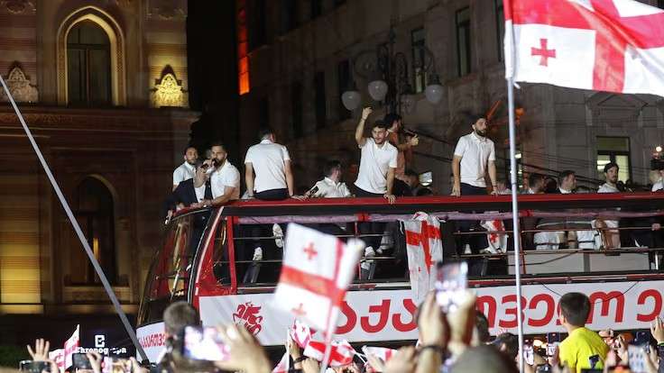 夺冠般的待遇!格鲁吉亚队回国后获球迷夹道欢迎 收获荣誉勋章