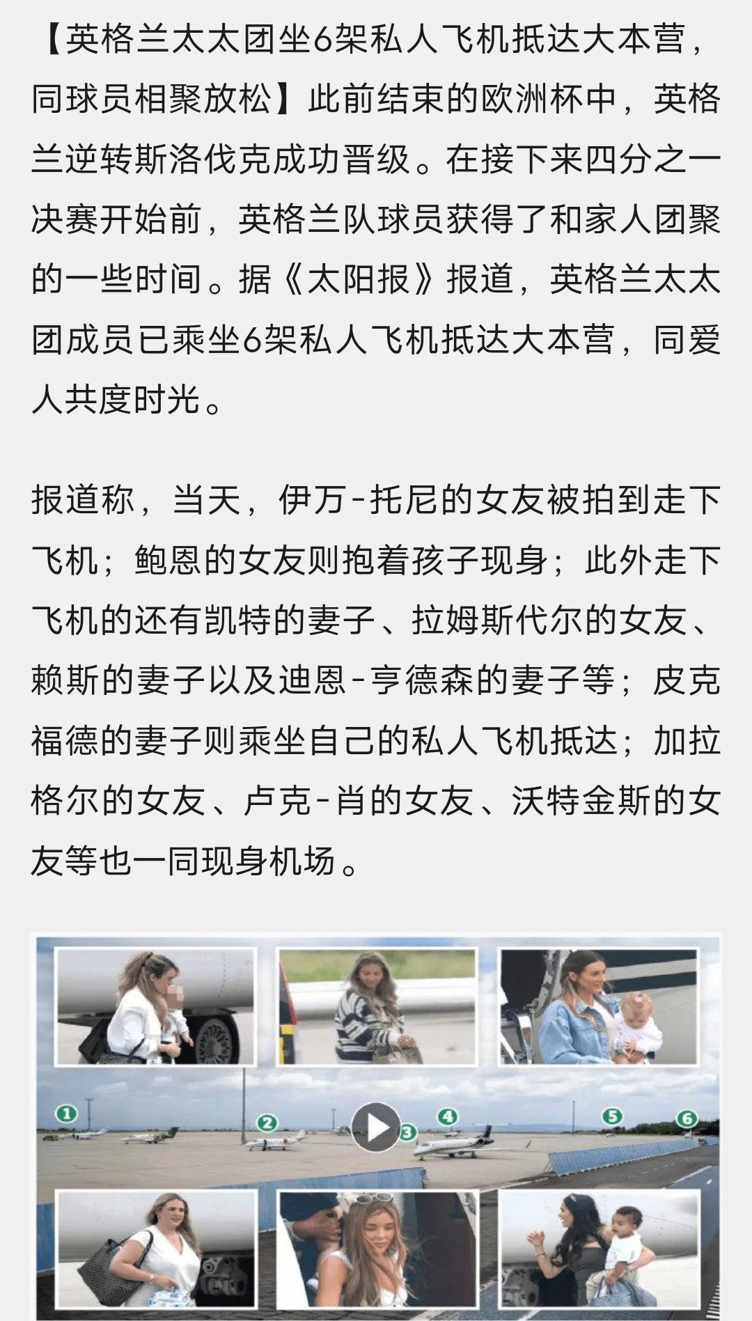 英格兰险胜斯洛伐克后 太太团乘私人飞机与球员团聚