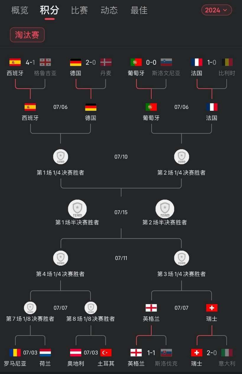 残酷半区!葡萄牙遭遇法国 西班牙激战德国 谁能进入半决赛?
