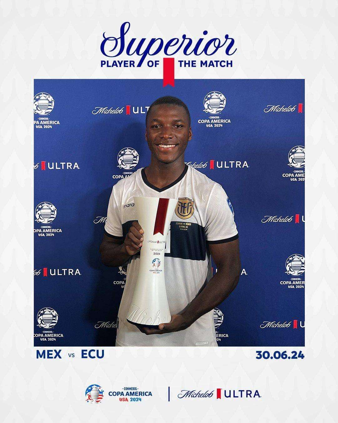 官方:凯塞多当选厄瓜多尔vs墨西哥全场最佳球员