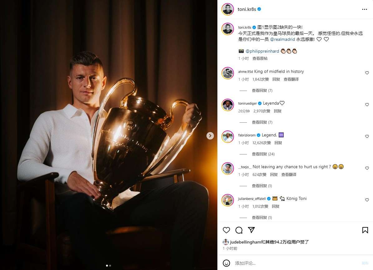 克罗斯社媒正式告别:今天是我作为皇马球员的最后一天!