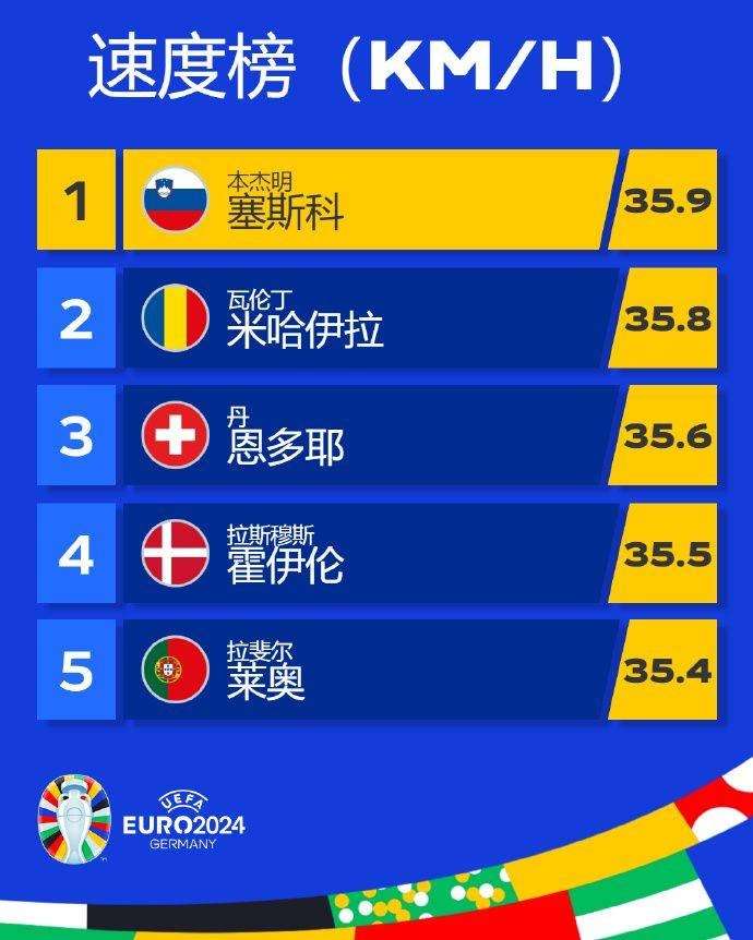 欧洲杯小组赛冲刺速度榜单:斯洛文尼亚前锋塞斯科位居榜首