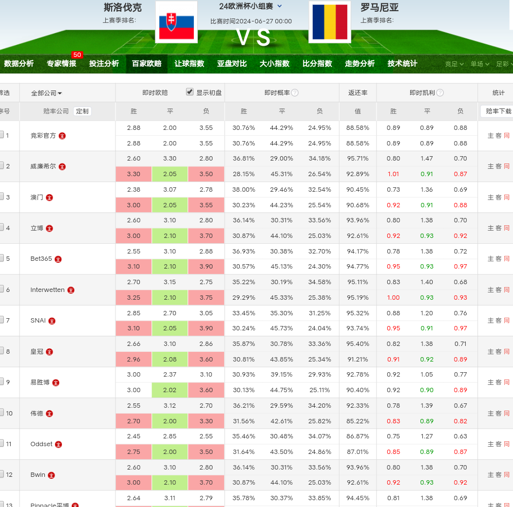 周三033欧洲杯:斯洛伐克VS罗马尼亚