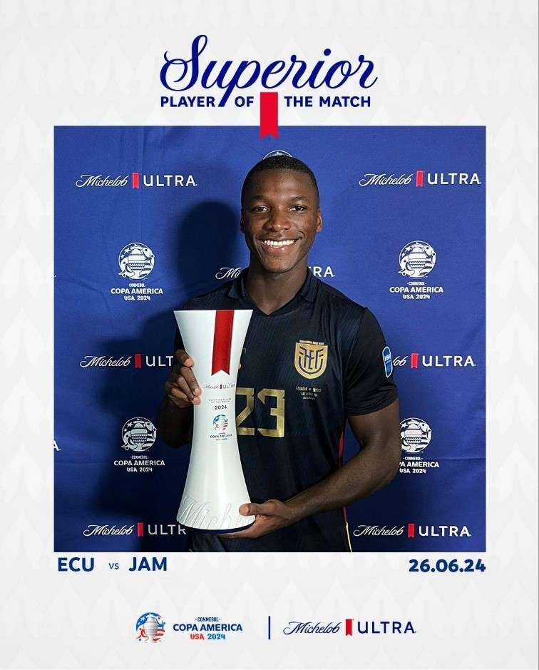 官方:凯塞多当选厄瓜多尔vs牙买加一战全场最佳