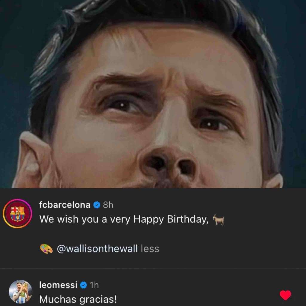 巴萨官方祝福梅西生日快乐 后者回复:非常感谢!