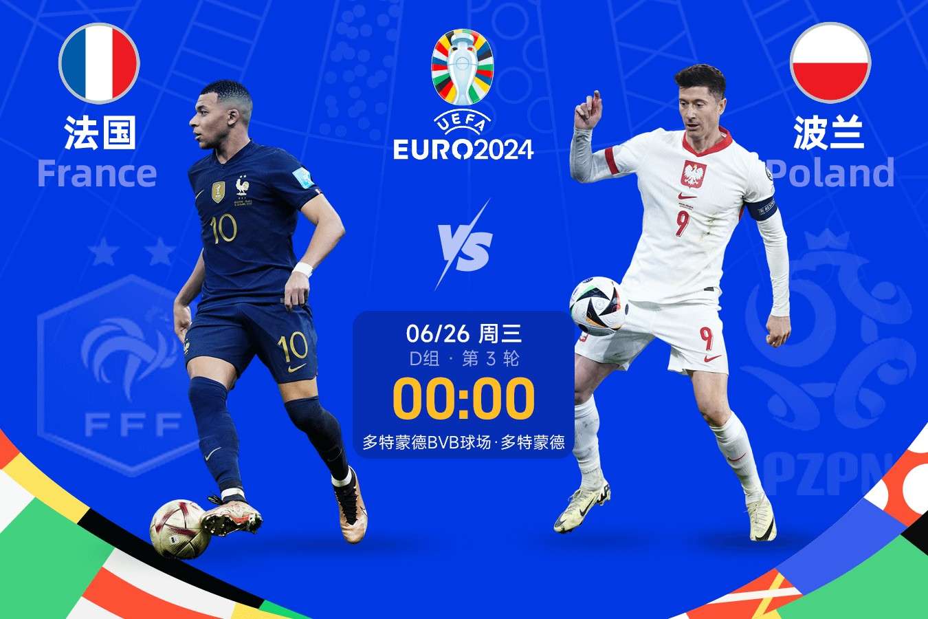 欧洲杯前瞻:姆巴佩能否出战存疑 法国三军用命誓斩3分 波兰力求首
