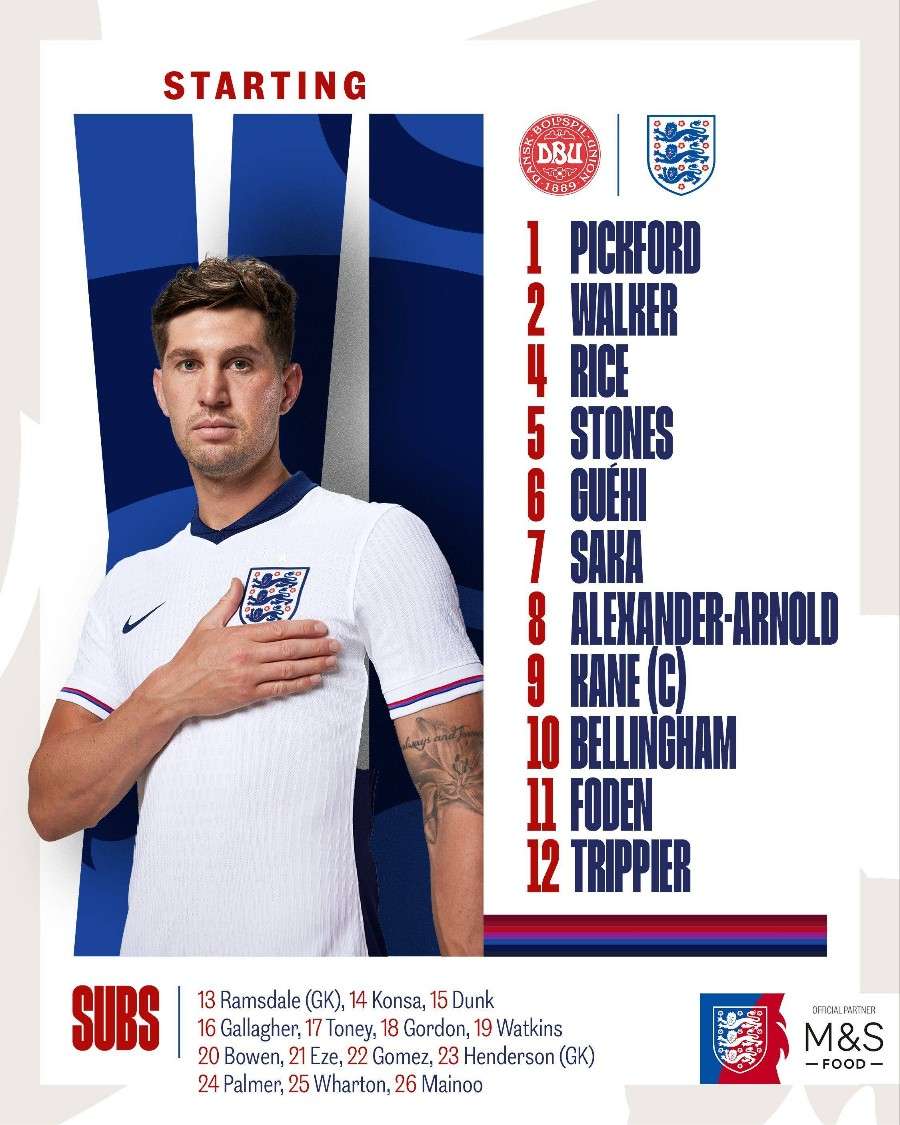 有自信!英格兰维持与上一场相同的首发11人