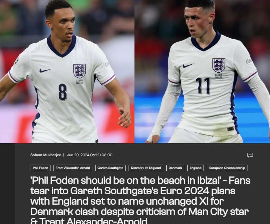 阿诺德+福登或连场首发 索斯盖特遭炮轰:不应该送他俩去度假吗?