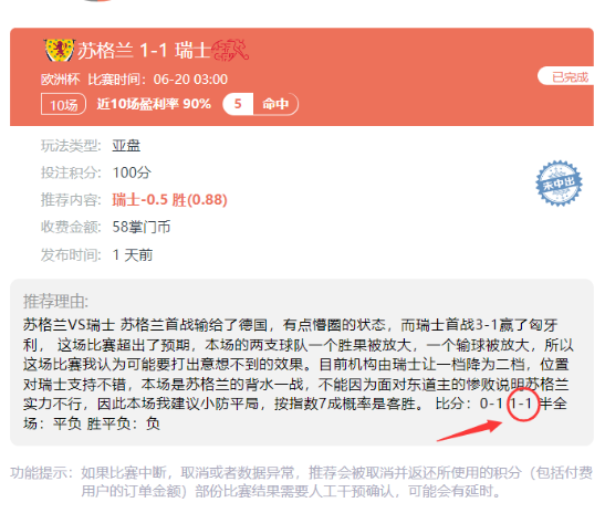 回顾欧洲杯:昨天其它两场正常中出,瑞士这场没标红,但是比分还是坚