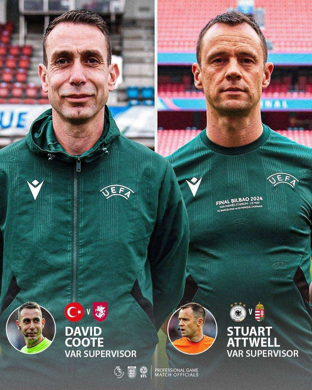又出动了!英超名哨库特&阿特维尔将分别担任欧洲杯A组次轮VAR裁
