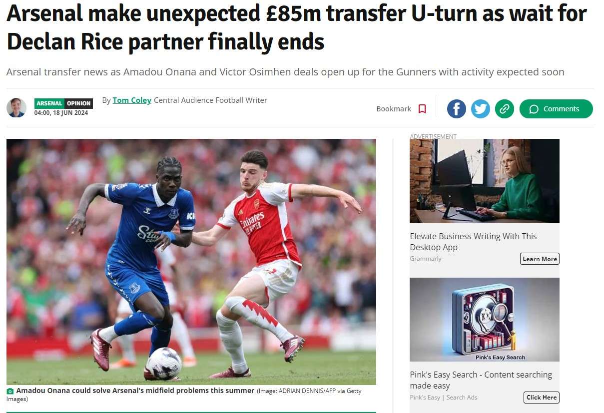 继续补强冲击冠军!阿森纳今夏或同时签下阿马杜·奥纳纳和奥斯梅恩