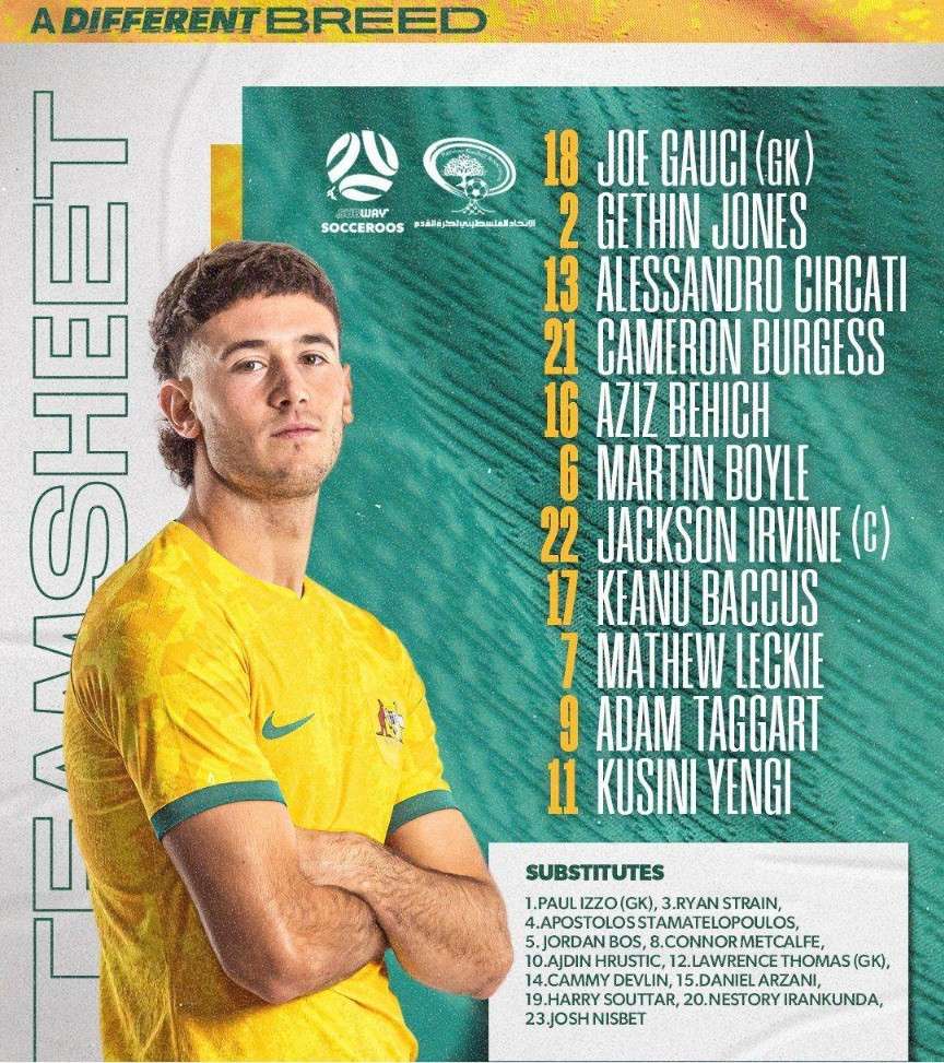 澳大利亚vs巴勒斯坦首发:古德温继续伤缺!欧文领衔 伊兰昆达替补
