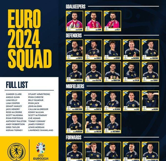 苏格兰公布欧洲杯26人大名单:罗伯逊、麦克托米奈入选 蒂尔尼、麦