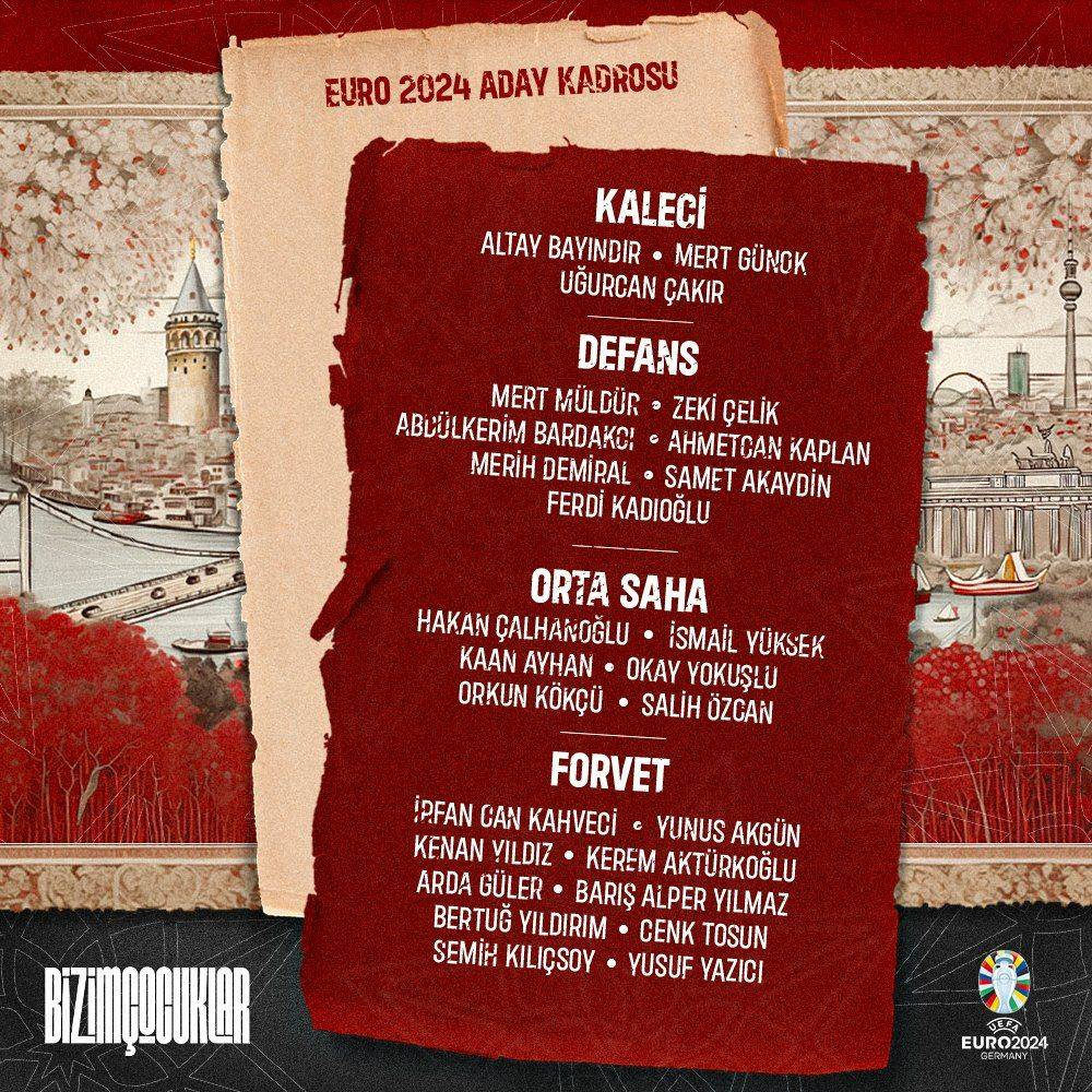 土耳其欧洲杯26人大名单:恰尔汗奥卢领衔 瑟云聚、卡巴克因伤无缘