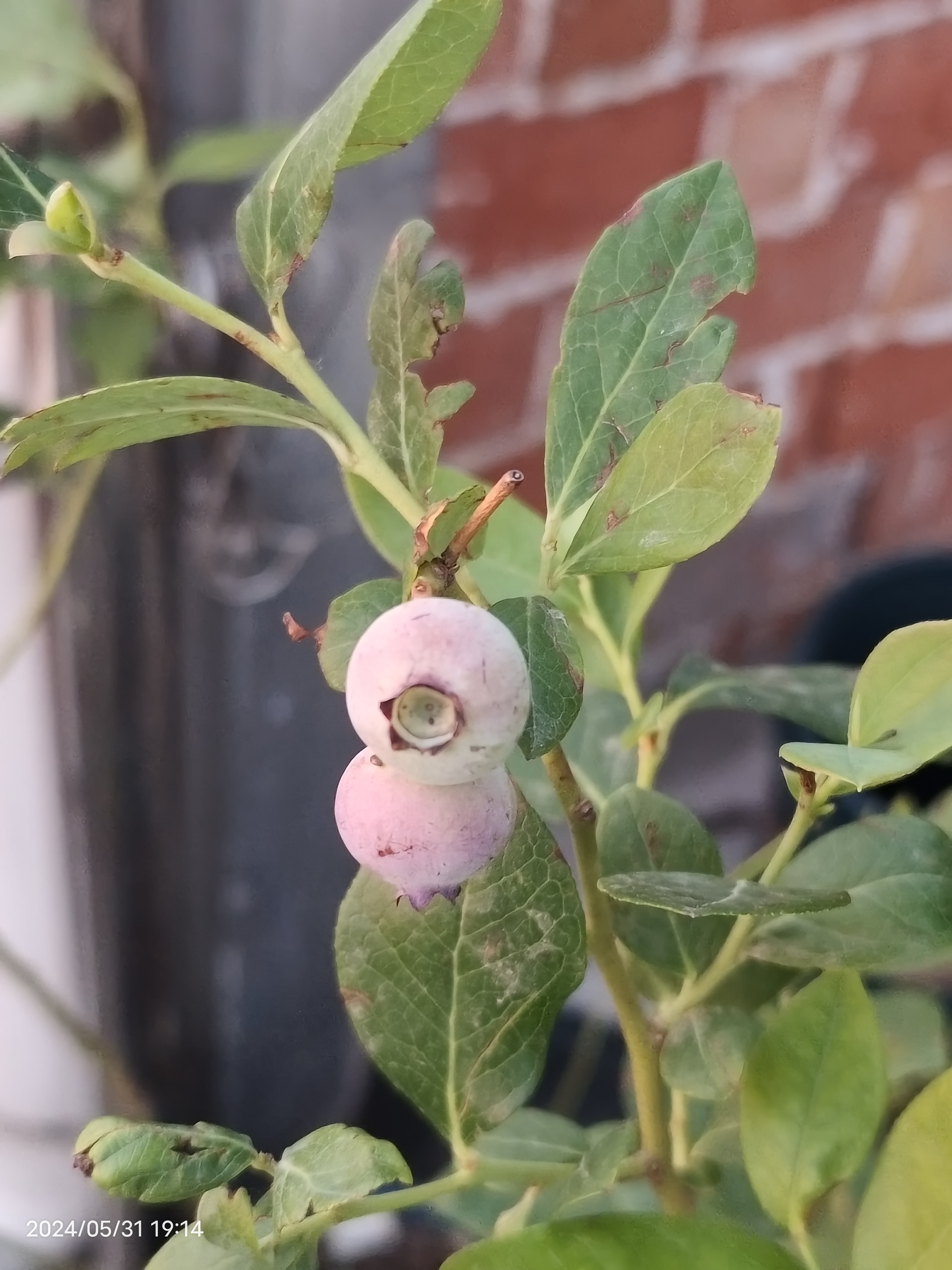 今年种的蓝莓很好吃。前几天还是青果,这几天全熟了。