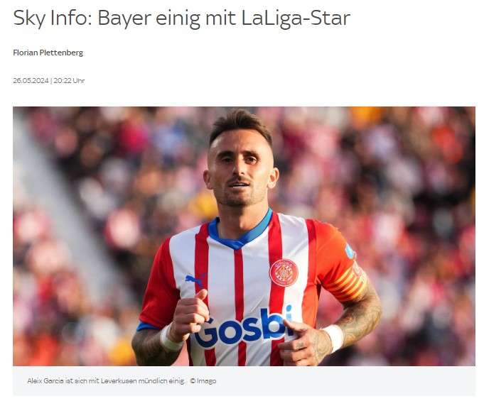 德天空:勒沃库森即将签下吉罗纳中场加西亚