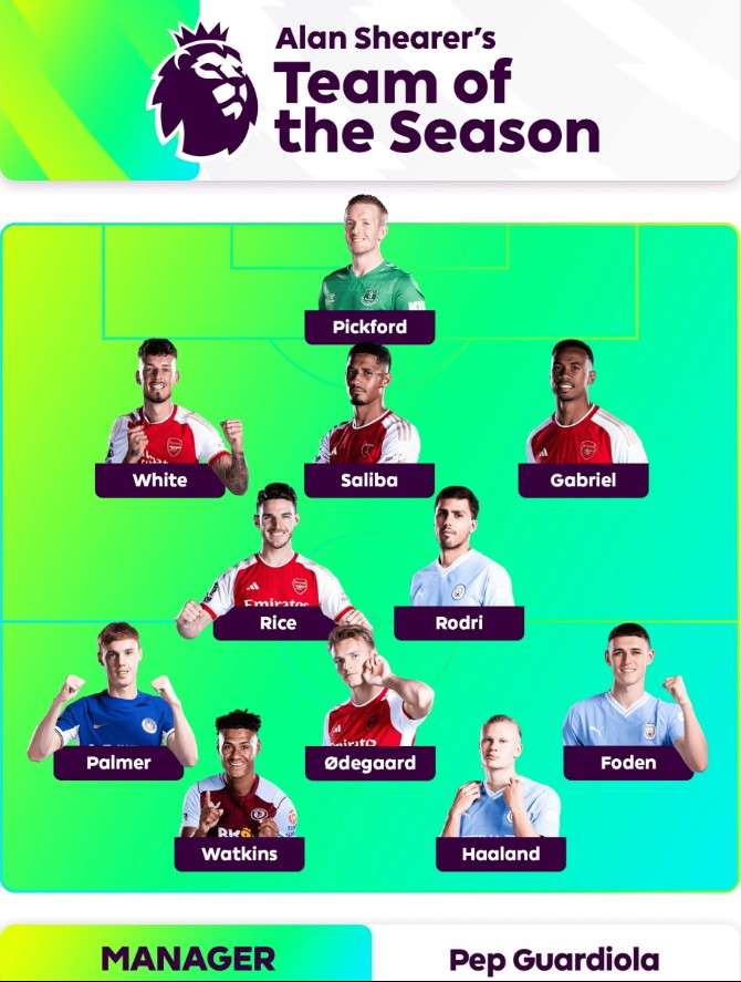 希勒眼中的本赛季英超最佳阵容:赖斯、罗德里联袂中场 三名后卫都来
