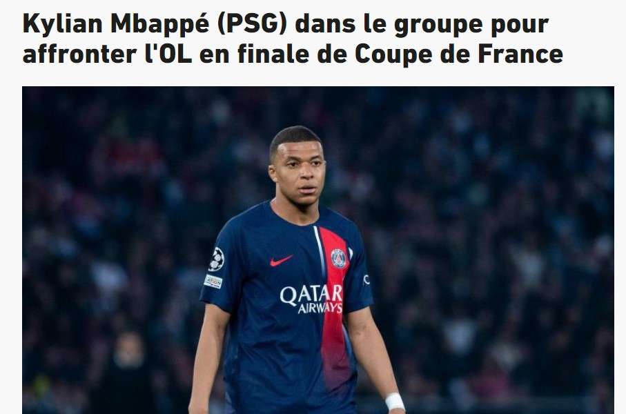 连续缺席最后两场法甲比赛后 姆巴佩有望在法国杯决赛中复出