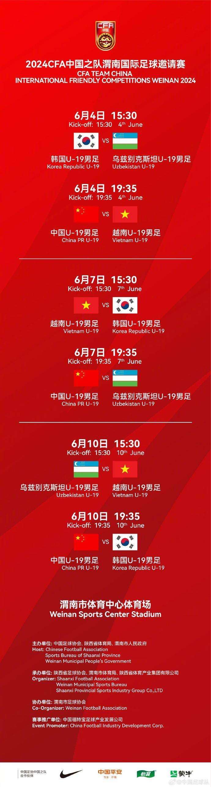 官方:中国U19将在6月迎战韩国、越南以及乌兹别克斯坦