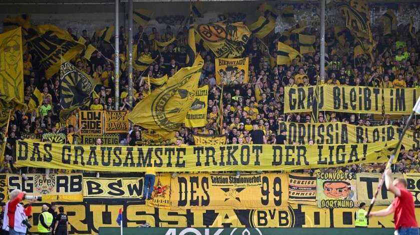多特蒙德球迷拉横幅抗议新赛季客场球衣:联赛最难看的球衣